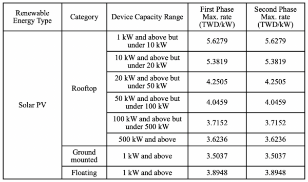 The feed-in tariffs for solar energy in Taiwan will remain at the same rates for 2026. The highest available tariff is TWD 5.63 ($0.18) per kWh for rooftop solar systems between 1 kW and 10 kW in capacity.